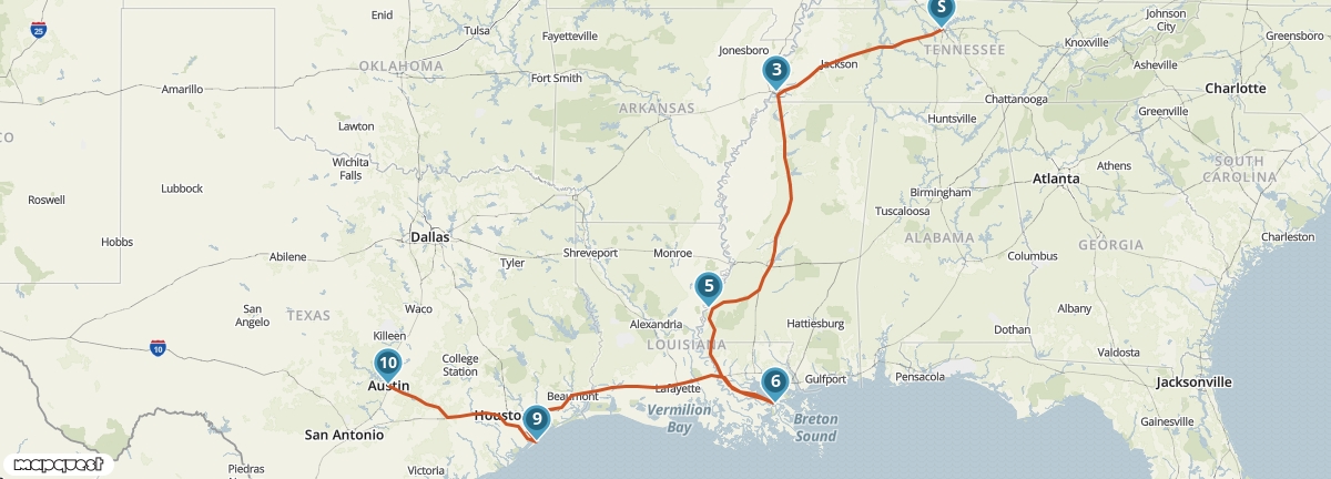 Deze autoreis door de Deep South is speciaal samengesteld voor liefhebbers van Amerikaanse muziek. De reis begint in Nashville, waar je kunt genieten van country- & westernmuziek. Daarna bezoek je Memphis, de stad van Martin Luther King en Elvis Presley. Voor jazz en soul bezoek je New Orleans en rock vind je in Austin, de hoofdstad van Texas en tevens eindbestemming van deze autoreis. Een complete kennismaking met het Diepe Zuiden!