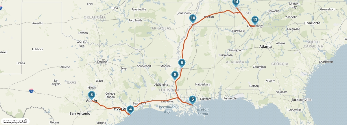 Deze autoreis is speciaal samengesteld voor liefhebbers van Amerikaanse muziek. De reis begint in Austin, waar je erg veel rockclubs vindt. Voor jazz en soul bezoek je New Orleans en daarna reis je naar Memphis, de stad van Martin Luther King en Elvis Presley. De reis eindigt in Nashville, waar je kunt genieten van country- & westernmuziek. . Een complete kennismaking met het Diepe Zuiden!