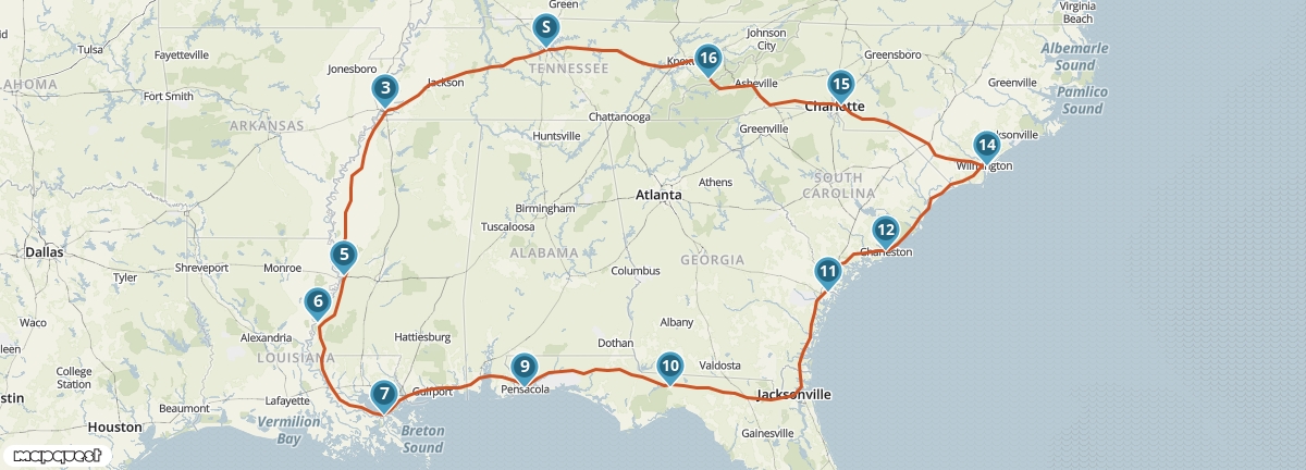 Tijdens deze autoreis bezoek je het ‘Diepe Zuiden’ van Amerika en de twee Carolina’s. Je bezoekt de muzikale stad Nashville, de bakermat van de country- en westernmuziek, en Memphis, de stad van Elvis Presley en Martin Luther King. In de Great Smoky Mountains maak je kennis met de natuur en in Charleston en Savannah kom je in aanraking met de tradities van de Deep South.