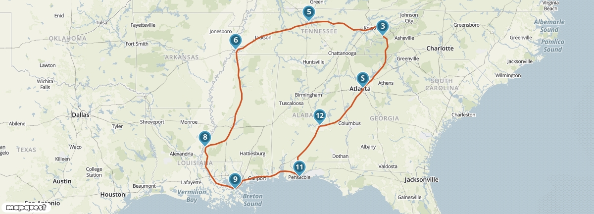 Deze camperreis gaat door het diepe zuiden van de Verenigde Staten. Je swingt in de muzieksteden Nashville, Memphis en New Orleans en bezoekt historische plaatsen als Natchez en Montgomery. Vergeet niet om onderweg de vele prachtige plantagehuizen te bekijken, zoals de Boone Hall Plantation.