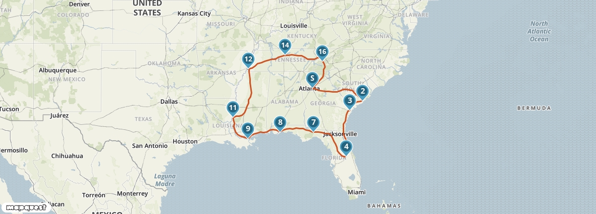 Je maakt tijdens deze autoreis kennis met de gastvrijheid van het Diepe Zuiden van de Verenigde Staten én de staat Florida. Je ziet de themaparken van Florida en voelt de jazz-vibes van New Orleans. Je bezoekt Nashville, de bakermat van de country- en westernmuziek, en Memphis, de stad van Elvis Presley en Martin Luther King. In Savannah en Charleston maak je kennis met typische bezienswaardigheden voor de Deep South: antebellum-architectuur, gastvrijheid en oude plantages.