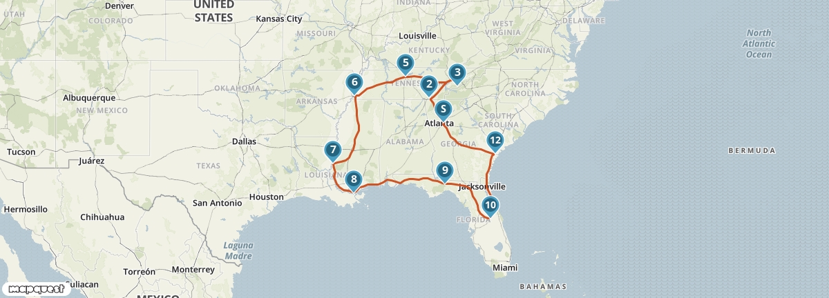 Je reis begint in Atlanta.
