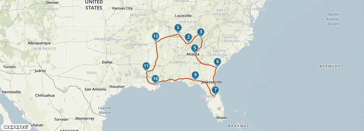 Je haalt 's middags de camper op in Nashville en vervolgt je weg naar Chattanooga.