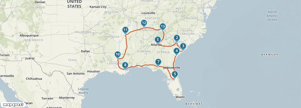 Je haalt 's middags de camper op in Atlanta en vervolgt je weg naar Columbia.