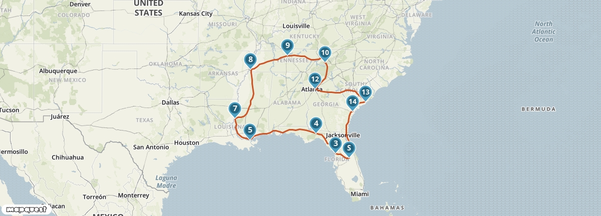 Tijdens deze camperreis maak je kennis met de gastvrijheid van het Diepe Zuiden van de Verenigde Staten. Je ziet de themaparken van Florida en de oude wereld van New Orleans. Je bezoekt Nashville, de bakermat van de country- en westernmuziek, en Memphis, de stad van Elvis Presley en Martin Luther King. In Savannah en Charleston maak je kennis met zuidelijke tradities en typische Deep South-bezienswaardigheden zoals antebellumhuizen en oude plantages.