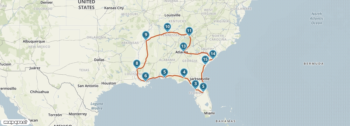 Tijdens deze camperreis maak je kennis met de gastvrijheid van het Diepe Zuiden van de Verenigde Staten. Je ziet de themaparken van Florida en de oude wereld van New Orleans. Je bezoekt Nashville, de bakermat van de country- en westernmuziek, en Memphis, de stad van Elvis Presley en Martin Luther King. In Savannah en Charleston maak je kennis met zuidelijke tradities en typische Deep South-bezienswaardigheden zoals antebellumhuizen en oude plantages.