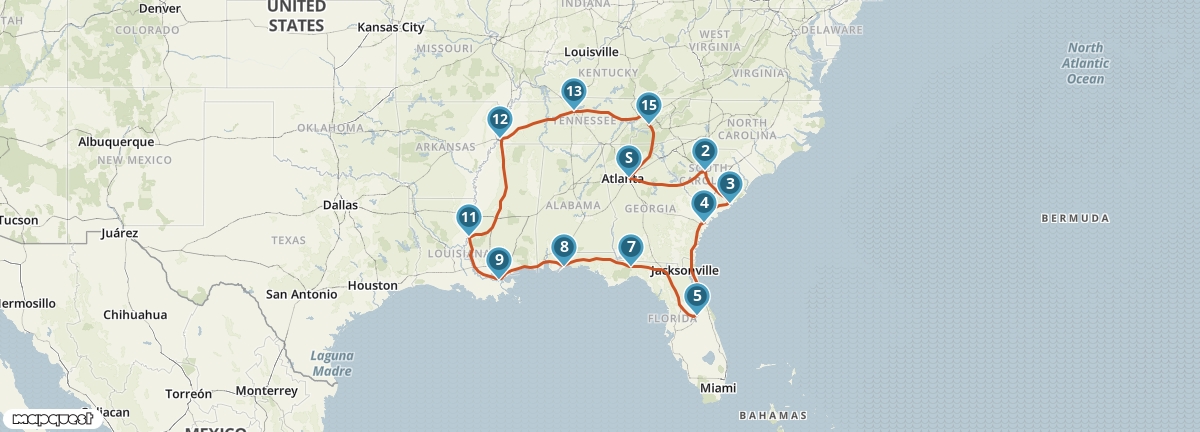Je haalt 's middags de camper op in Atlanta en vervolgt je weg naar Columbia.