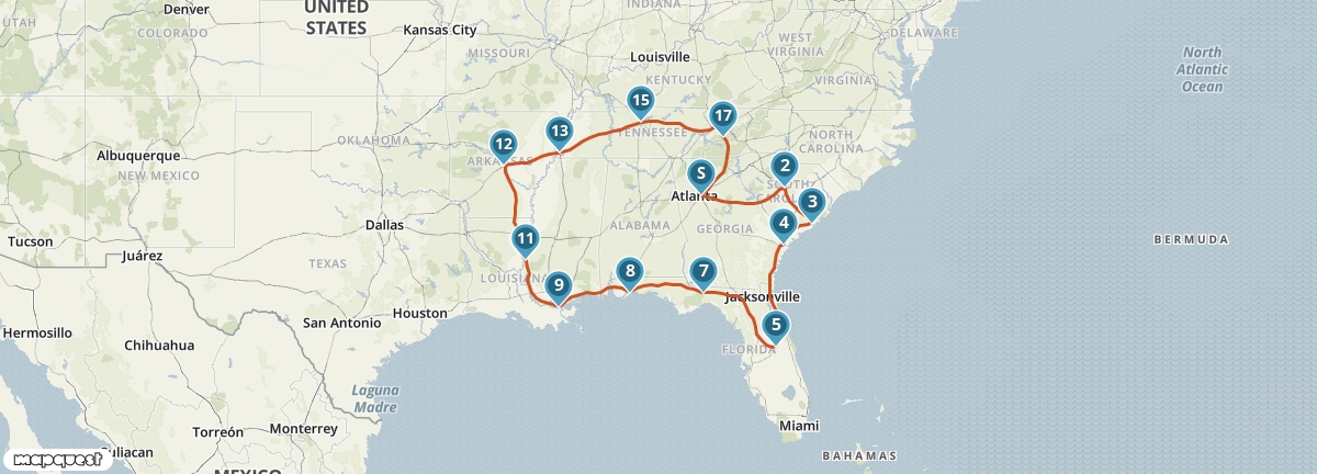 Je haalt 's middags de camper op in Atlanta en vervolgt je weg naar Columbia.