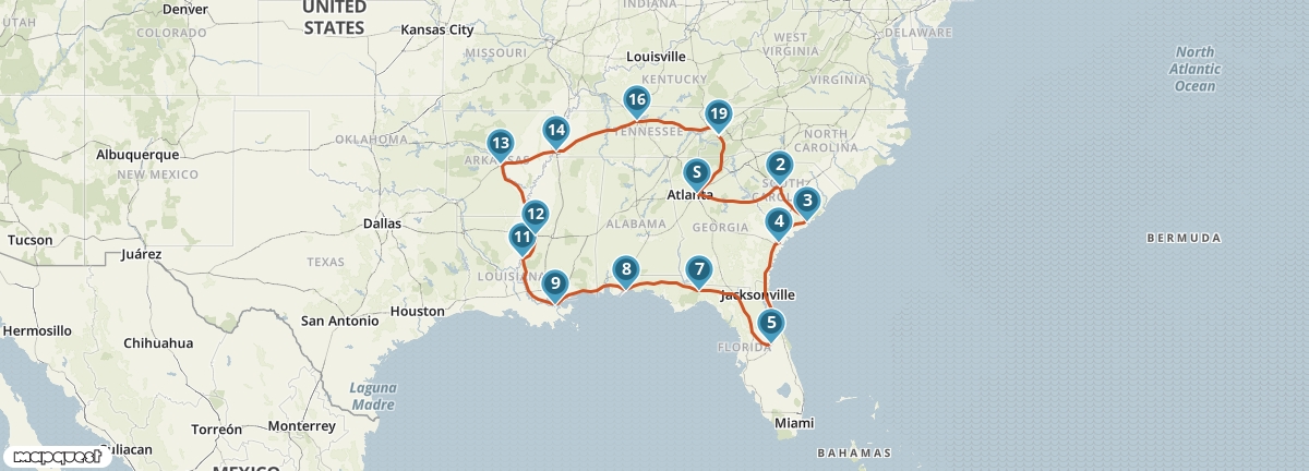 Je haalt 's middags de camper op in Atlanta en vervolgt je weg naar Columbia.