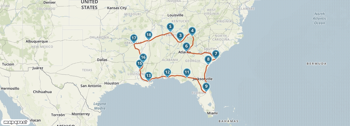 Je haalt 's middags de camper op in Nashville en vervolgt je weg naar Chattanooga.