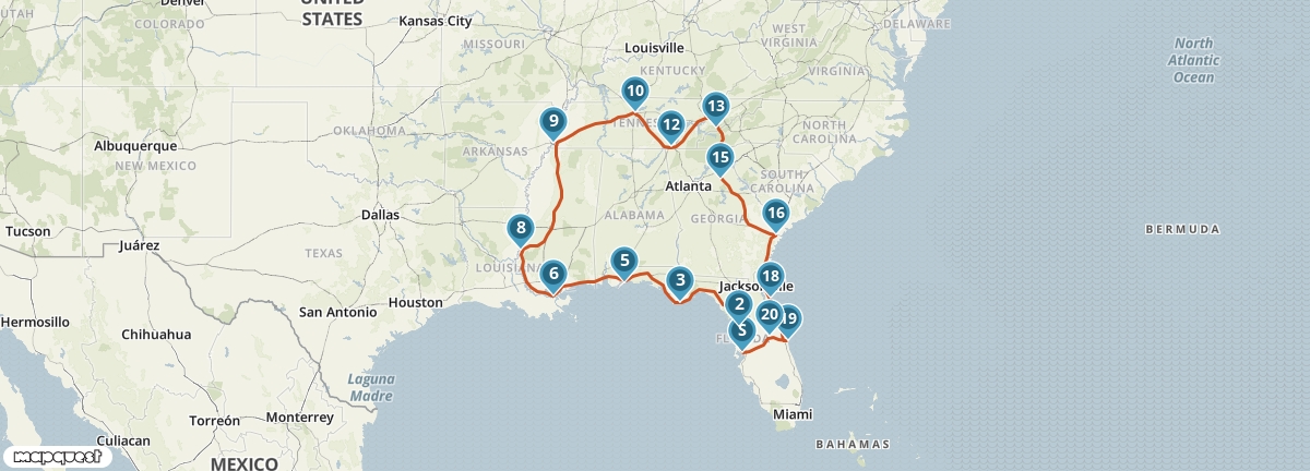 Beleef de muziekstaten vol country, rhythm & blues in het zuiden van de Verenigde Staten. Deze swingende camperrondreis voor het hele gezin begint en eindigt in Tampa, wat maakt dat je deze familiereis makkelijk kunt uitbreiden met de stranden en pretparken van Florida. Hoogtepunten als Memphis, Nashville en New Orleans ontbreken niet in deze route. Klinkt dit als muziek in je oren? Dan is een rondreis door Amerika's Southern Music States iets voor jullie.