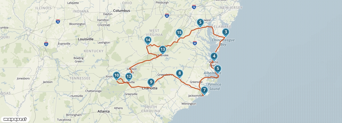 Valt je keuze op deze afwisselende route, dan maak je kennis met de belangrijkste monumenten van Amerika in Washington DC. Je bezoekt de schitterende Appalachen met natuurgebieden zoals Shenandoah National Park, de Blue Ridge Mountains en Great Smoky Mountains National Park. Ook ontdek je de mooie oostkust met zijn vuurtorens, kilometerslange stranden, zandduinen en de barrière-eilanden van de Outer Banks.
