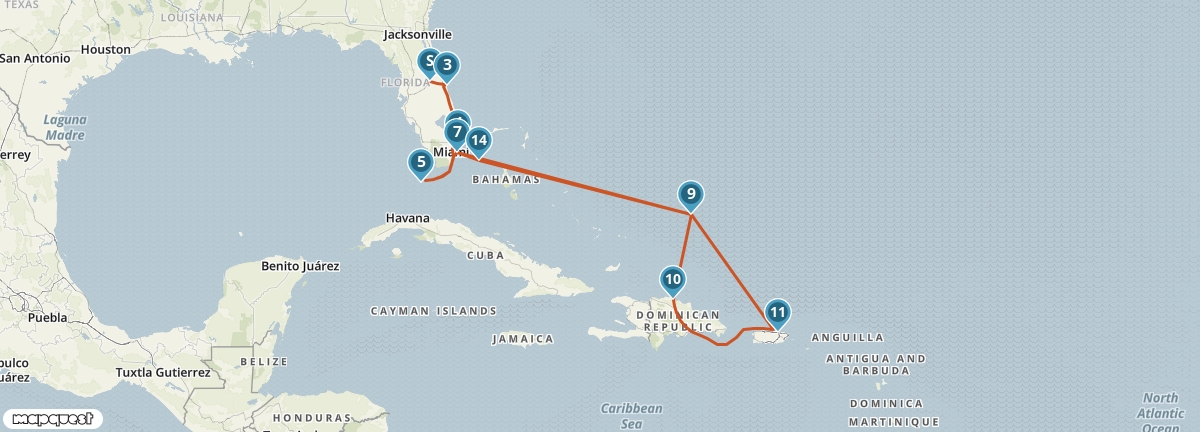 Wil je de route voor (of na) de cruise helemaal op maat (laten) maken? Houd dan rekening met de vertrekdatum van de cruise vanuit Miami.