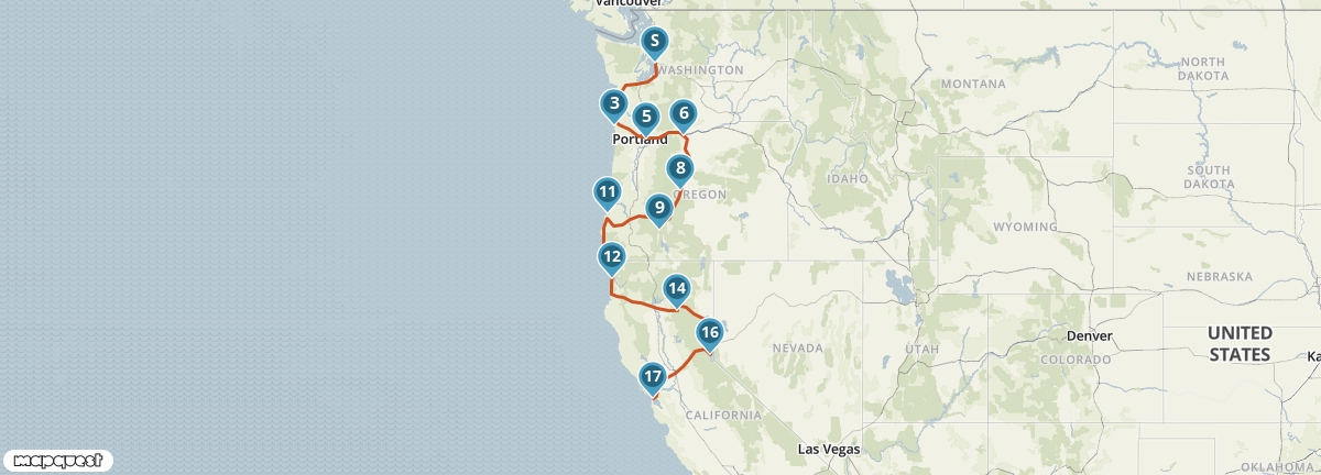 Met deze afwisselende route slinger je zowel langs de kust als door het binnenland van Noordwest Amerika en bezoek je ongerepte natuurparken en de schitterende kustlijn. Je reist via de uitgedoofde vulkanen van Crater Lake en de kloven en watervallen bij de Columbia River Gorge. Verwonder je over bijzondere nationale parken als Redwood en Lassen Volcanic en blaas uit op de stranden bij Cannon Beach. Je eindigt in de geliefde stad San Francisco.