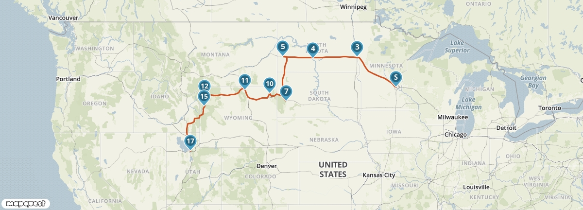 Deze camperreis voert je door de prairies en badlands van North en South Dakota. Je bezoekt in Minneapolis de Mall of America: het grootste winkelcentrum van Amerika! Dan volg je de kaarsrechte Highways uit de film Fargo door de 'Graanschuur van Amerika'. Plains vol grazende bizons en uitgestrekte vlaktes worden hier omzoomd door besneeuwde bergpieken. Deze camperreis sluit je af in Yellowstone National Park.