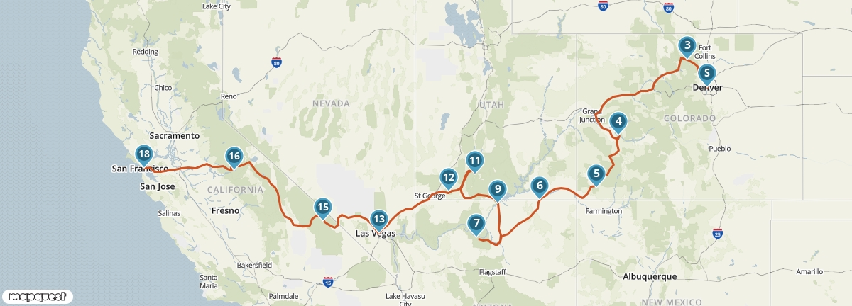 Treed in de voetsporen van de pioniers met deze autoreis van Denver naar San Francisco. Onderweg zul je je verbazen over de enorme verscheidenheid aan landschappen en de eindeloze vergezichten. Ontdek de ongerepte natuur in Yosemite en het Rocky Mountain National Park en neem in Mesa Verde National Park en Monument Valley een kijkje in het leven van indianen. Ook Las Vegas en de Grand Canyon ontbreken niet in deze reis.