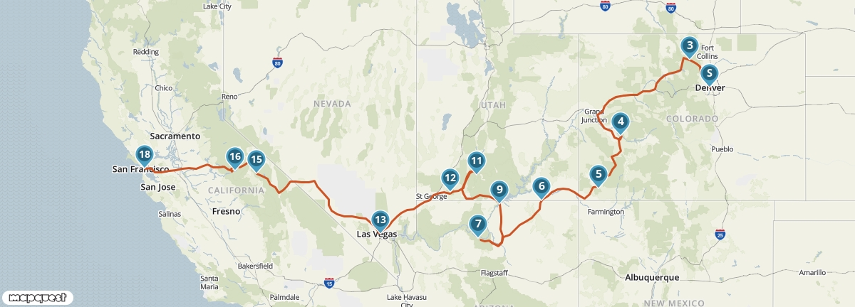 Treed in de voetsporen van de pioniers en reis met de camper van Denver naar San Francisco. Onderweg zul je je verbazen over de enorme verscheidenheid aan landschappen en de eindeloze vergezichten. Ontdek de ongerepte natuur in Yosemite en Rocky Mountain National Park en neem in Mesa Verde National Park en Monument Valley een kijkje in het leven van indianen. Ook Las Vegas en de Grand Canyon ontbreken niet in deze camperreis.