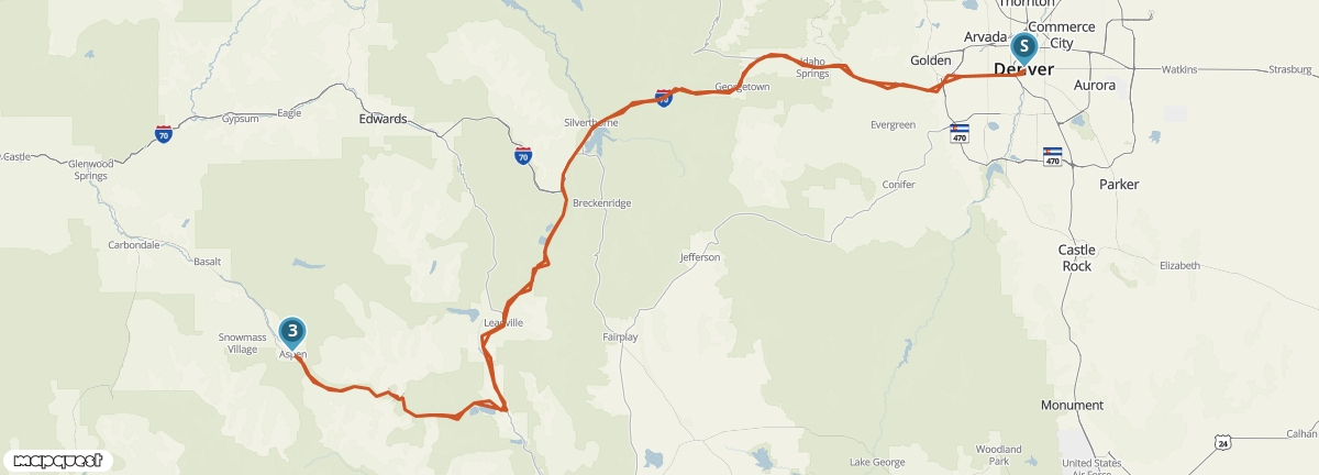 Je haalt de auto op in Denver en vervolgt je weg naar Aspen.