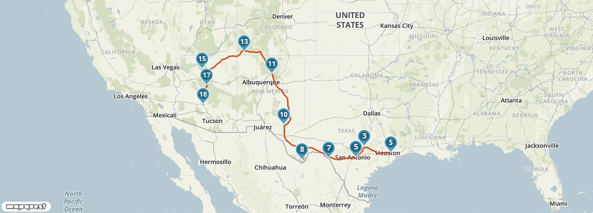 Je reis begint in Houston.