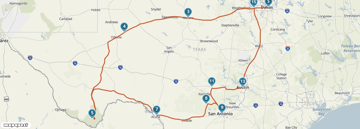 Midland is een overnachtingsplaats tussen Amarillo en Big Bend National Park. Het gebied, bekend als het Permian Basin, is het centrum voor de olie-industrie. Klinkt weinig aantrekkelijk, maar ook dat is Texas! Een bezoek aan het Permian Basin Petroleum Museum mag eigenlijk niet ontbreken. Je kunt in Midland ook het ouderlijk huis van president George W. Bush bezoeken.