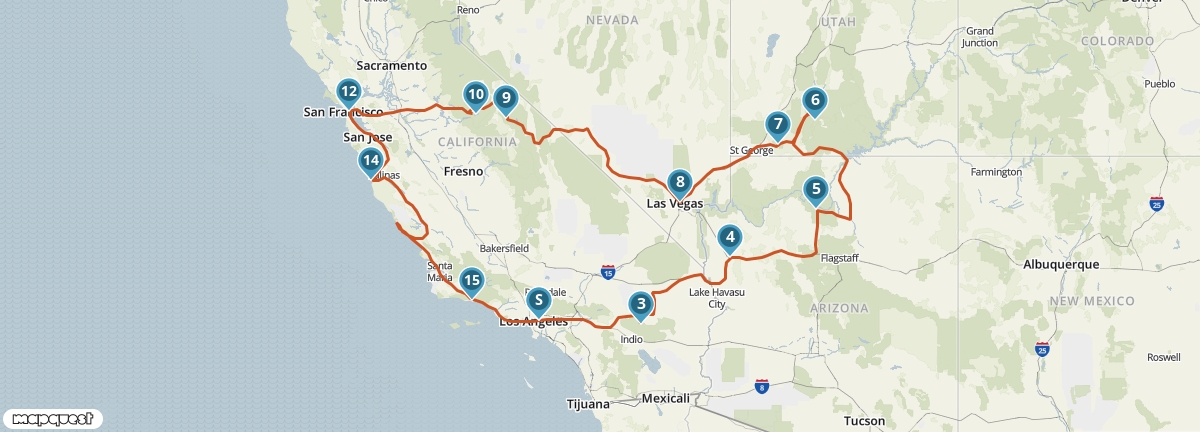 Vanuit Los Angeles maak je een rondreis langs de mooiste plaatsen van het zuidwesten van de Verenigde Staten. Je ziet de watervallen van Yosemite National Park, de meest iconische natuurparken van Arizona en Utah en de steden aan de Pacific Coast. Je verblijft op een aantal plaatsen twee nachten, dus je hebt voldoende tijd om alles goed te bekijken en te beleven.