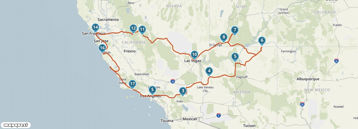 Vanuit Los Angeles maak je een rondreis langs de mooiste plaatsen van het zuidwesten van de Verenigde Staten. Je ziet de watervallen van Yosemite National Park, de meest iconische natuurparken van Arizona en Utah en de steden aan de Pacific Coast. Je verblijft op een aantal plaatsen twee nachten, dus je hebt voldoende tijd om alles goed te bekijken en te beleven.