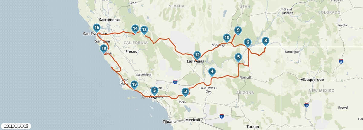 Vanuit Los Angeles maak je een rondreis langs de mooiste plaatsen van het zuidwesten van de Verenigde Staten. Je ziet de watervallen van Yosemite National Park, de meest iconische natuurparken van Arizona en Utah en de steden aan de Pacific Coast. Je verblijft op een aantal plaatsen twee nachten, dus je hebt voldoende tijd om alles goed te bekijken en te beleven.