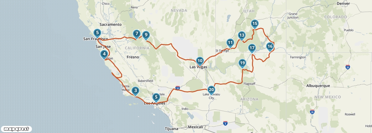 Vanuit Los Angeles maak je een rondreis langs de mooiste plaatsen van het zuidwesten van de Verenigde Staten. Je ziet de watervallen van Yosemite National Park, de meest iconische natuurparken van Arizona en Utah en de steden aan de Pacific Coast. Je verblijft op een aantal plaatsen twee nachten, dus je hebt voldoende tijd om alles goed te bekijken en te beleven.