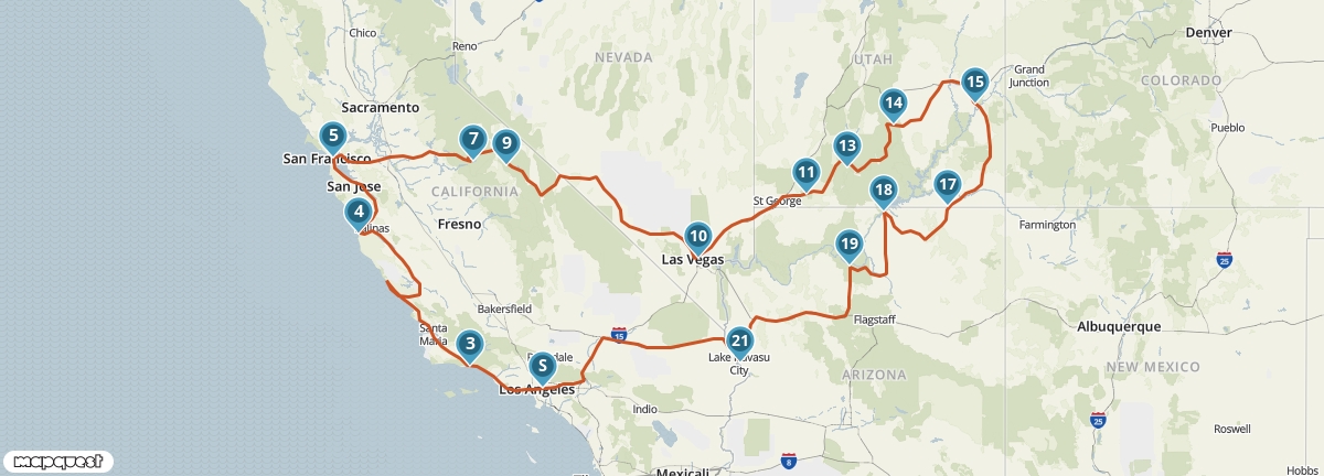 Vanuit Los Angeles maak je een rondreis langs de mooiste plaatsen van het zuidwesten van de Verenigde Staten. Je ziet de watervallen van Yosemite National Park, de meest iconische natuurparken van Arizona en Utah en de steden aan de Pacific Coast. Je verblijft op een aantal plaatsen twee nachten, dus je hebt voldoende tijd om alles goed te bekijken en te beleven.