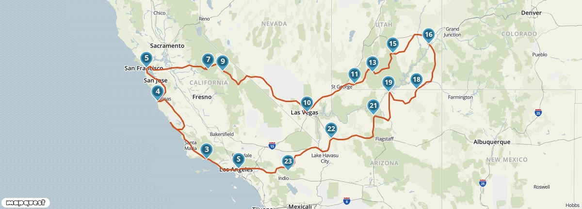Vanuit Los Angeles maak je een rondreis langs de mooiste plaatsen van het zuidwesten van de Verenigde Staten. Je ziet de watervallen van Yosemite National Park, de meest iconische natuurparken van Arizona en Utah en de steden aan de Pacific Coast. Je verblijft op een aantal plaatsen twee nachten, dus je hebt voldoende tijd om alles goed te bekijken en te beleven.