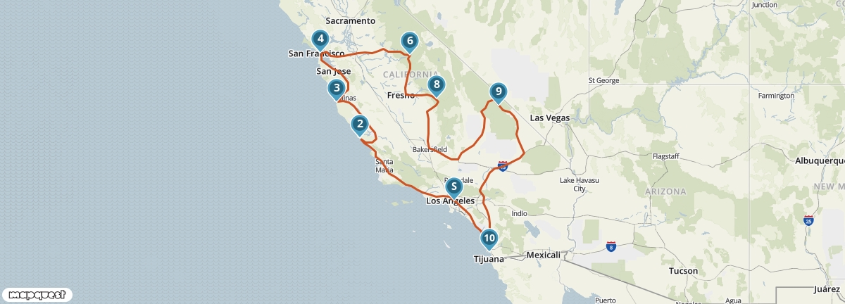Deze reis is een afwisselende ontdekkingsreis door de staat Californië. Langs de stranden van San Simeon en Carmel/Monterey reis je naar San Francisco. Daarna zie je de beboste bergen met watervallen in Yosemite, de torenhoge sequoiabomen in Sequoia National Park en het laaggelegen woestijngebied van Death Valley. Tenslotte keer je via San Diego terug in Los Angeles.