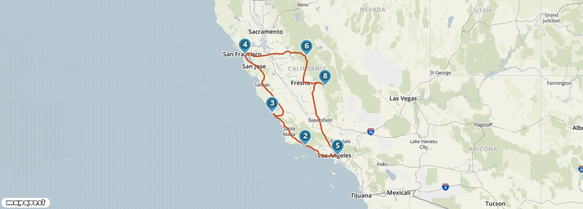 Deze reis is een afwisselende ontdekkingsreis door de staat Californië. Langs de stranden van Santa Barbara en San Simeon reis je naar San Francisco. Daarna zie je de beboste bergen met watervallen in Yosemite, gevolgd door de reusachtige sequoiabomen van Sequoia National Park, waarna je terugkeert in Los Angeles.