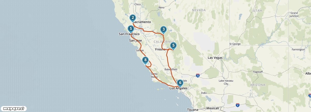 Deze reis is een afwisselende ontdekkingsreis door de staat Californië. Vanuit San Francisco reis je naar Yosemite voor de beboste bergen en watervallen, gevolgd door de reusachtige sequoiabomen van Sequoia National Park. Daarna rijd je via Los Angeles langs de kustweg langs San Simeon en terug naar het noordelijker gelegen San Francisco.