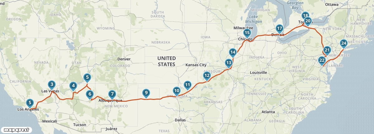Voor velen is dit een langgekoesterde wens: van de ene naar de andere kust, dwars over het Amerikaanse continent rijden. Van de Pacific Coast bij Los Angeles rijd je langs diverse National Parks en passeer je de eindeloze leegte van het Middenwesten. Je volgt de legendarische Route 66 in oostelijke richting naar Chicago. Tenslotte ga je via de Niagara Falls naar New York.