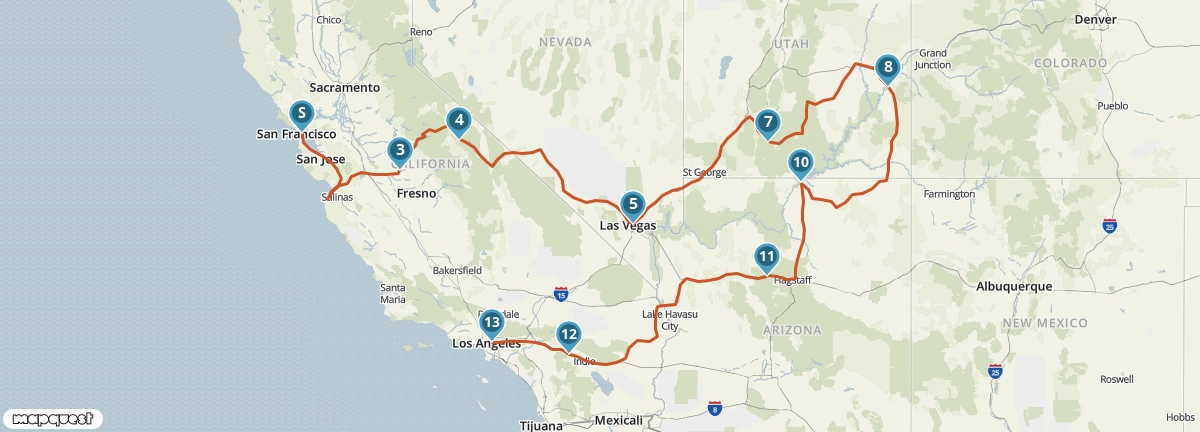 Maak een comfortabele groepsreis langs de highlights van het zuidwesten van de Verenigde Staten. Deze rondreis met Nederlandstalige reisleiding brengt je naar de watervallen van Yosemite, de hoodoos en bogen van Bryce Canyon en Arches National Park en de wereldberoemde Grand Canyon. De busreis start in San Francisco en eindigt in Los Angeles.