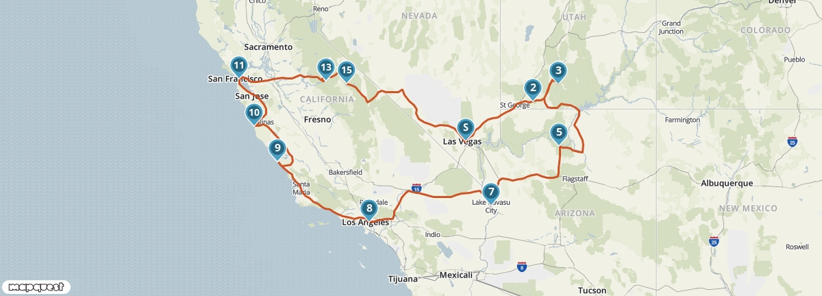 Tijdens deze reis krijg je een goede indruk van de hoogtepunten van het zuidwesten van de Verenigde Staten. Je bezoekt vier staten en ziet onderweg wereldsteden als San Francisco, Las Vegas en Los Angeles. Bovendien maak je kennis met verschillende National Parks, waaronder Yosemite en de Grand Canyon. Een van de mooiste etappes van de reis voert je over de beroemde Pacific Coast Highway.