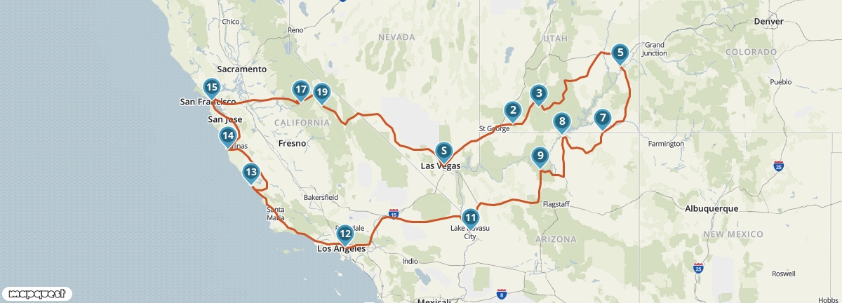 Tijdens deze reis krijg je een goede indruk van de hoogtepunten van het zuidwesten van de Verenigde Staten. Je bezoekt vier staten en ziet onderweg wereldsteden als San Francisco, Las Vegas en Los Angeles. Bovendien maak je kennis met verschillende National Parks, waaronder Yosemite en de Grand Canyon. Een van de mooiste etappes van de reis voert je over de beroemde Pacific Coast Highway.