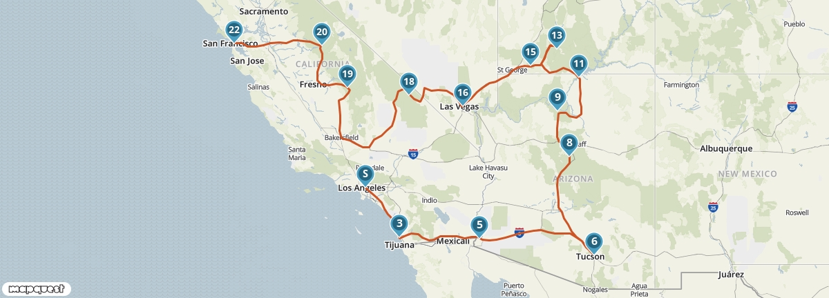 Maak een prachtige autorondreis met je kinderen door Zuidwest-Amerika! Dit is een perfecte bestemming voor een rondreis met kinderen. Tijdens deze gevarieerde autoreis (fly-drive) bezoek in het westen van Amerika spectaculaire natuurparken, grootse steden én maak je relaxte uitstapjes aan zee of bij een meer. Vergaap je aan gigantische reuzensequoia's, huur een fiets in San Francisco en relax aan de Pacific. Je ervaart wereldberoemde hoogtepunten als de Grand Canyon en Zion National Park. De routes vanaf 24 dagen doen de toffe stad Tucson aan in het Wilde Westen. De autoreis is helemaal naar wens aan te passen.