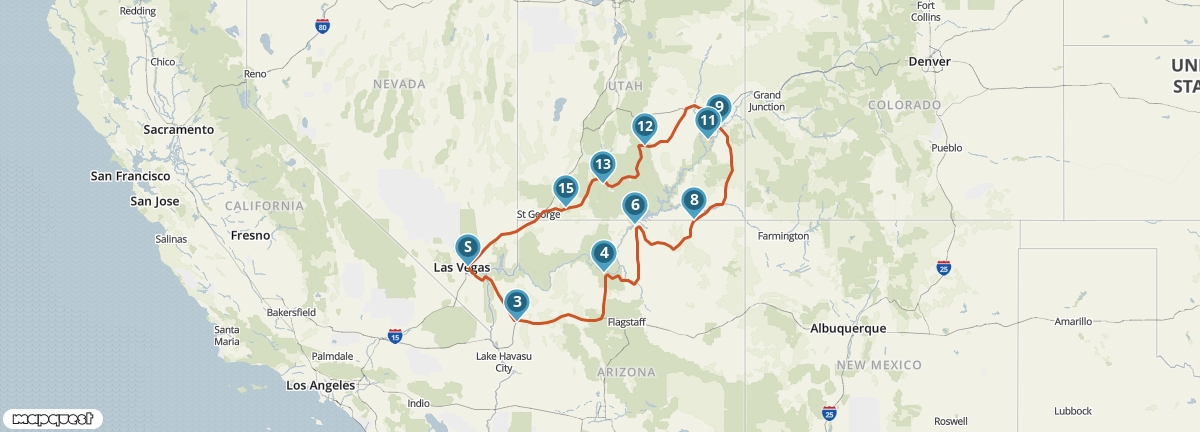 Midden in de woestijn ligt het grootste gokparadijs van Amerika: Las Vegas. Het centrum strekt zich uit over één straat, de Strip. Aan deze weg liggen de grote hotels, met casino’s en andere attracties zoals pretparken, dierentuinen en grote theaterzalen. ’s Avonds baadt de straat een oase van (neon)licht. Naast casino's zijn er in Las Vegas talloze trouwkapelletjes. Vergeet aan de Strip niet het beroemde Las Vegas-bord te fotograferen!
