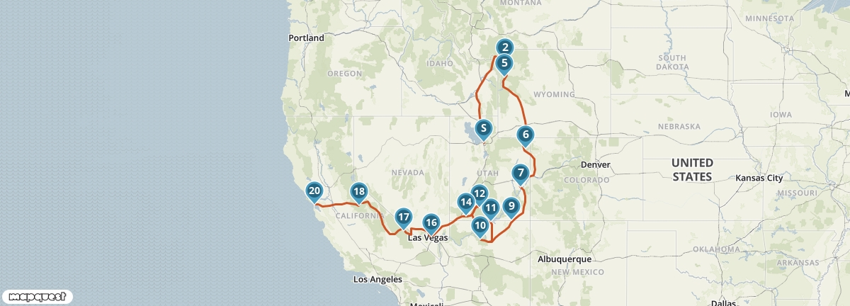 De afstanden in Amerika zijn groot, maar door een slimme one-way te maken van alt Lake City naar San Francisco, kun je de meest uiteenlopende landschappen ontdekken. Je bezoekt onder andere de westkust, de dichte bossen en hoge watervallen van Yosemite National Park, de woestijnachtige landschappen van het Zuidwesten en het alpinegebied rond Yellowstone.