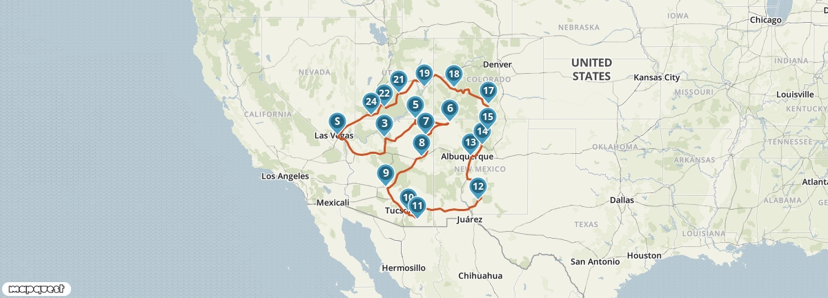 Je reis begint in Las Vegas. Na aankomst haal je meteen de auto op op het vliegveld.