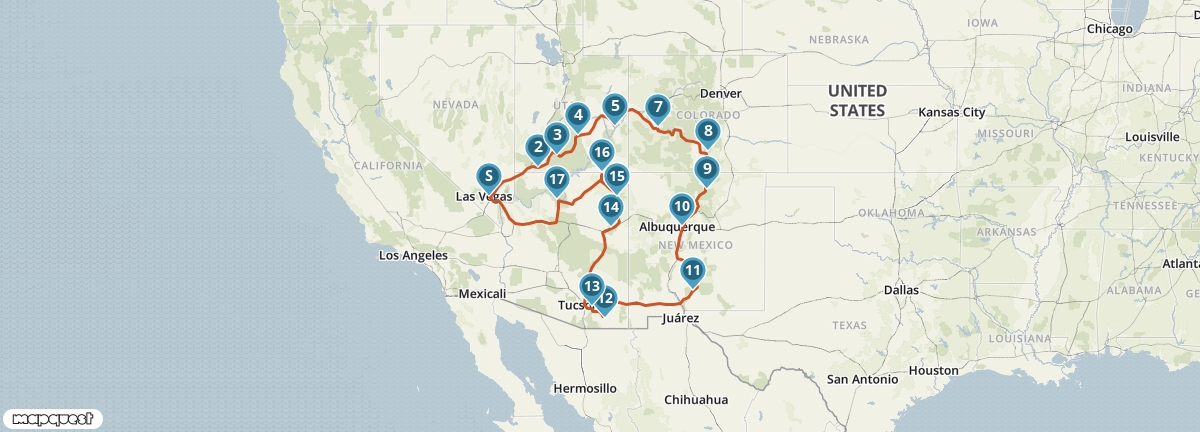 Je reis begint in Las Vegas. Na aankomst haal je meteen de auto op op het vliegveld.