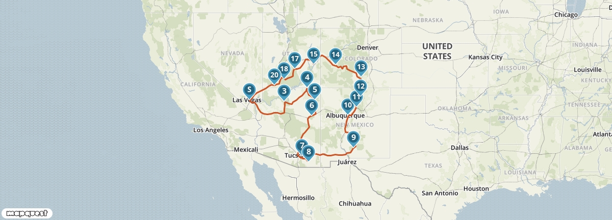 Je reis begint in Las Vegas.