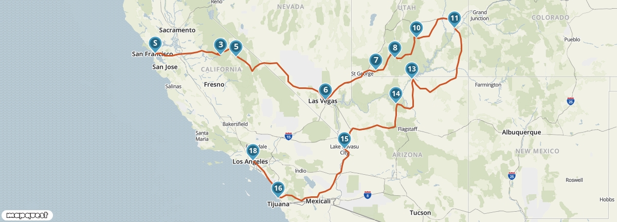 Tijdens deze reis verken je in een rustig tempo een groot deel van het zuidwesten van de Verenigde Staten. Je bezoekt wereldsteden als Los Angeles, San Diego, Las Vegas en San Francisco en je maakt kennis met de natuur in de National Parks en indianenreservaten van Arizona, Utah en Californië.