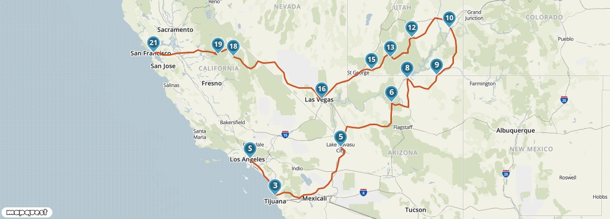 Tijdens deze reis verken je in een rustig tempo een groot deel van het zuidwesten van de Verenigde Staten. Je bezoekt wereldsteden als Los Angeles, San Diego, Las Vegas en San Francisco en je maakt kennis met de natuur in de National Parks en indianenreservaten van Arizona, Utah en Californië.