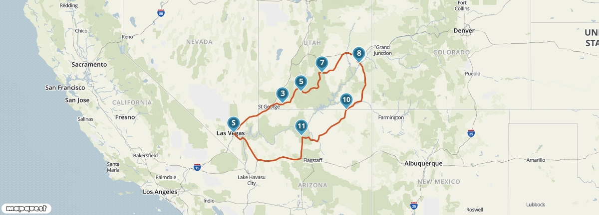Midden in de woestijn ligt het grootste gokparadijs van Amerika: Las Vegas. Het centrum strekt zich uit over één straat, de Strip. Aan deze weg liggen de grote hotels, met casino’s en andere attracties zoals pretparken, dierentuinen en grote theaterzalen. ’s Avonds baadt de straat een oase van (neon)licht. Naast casino's zijn er in Las Vegas talloze trouwkapelletjes. Vergeet aan de Strip niet het beroemde Las Vegas-bord te fotograferen!