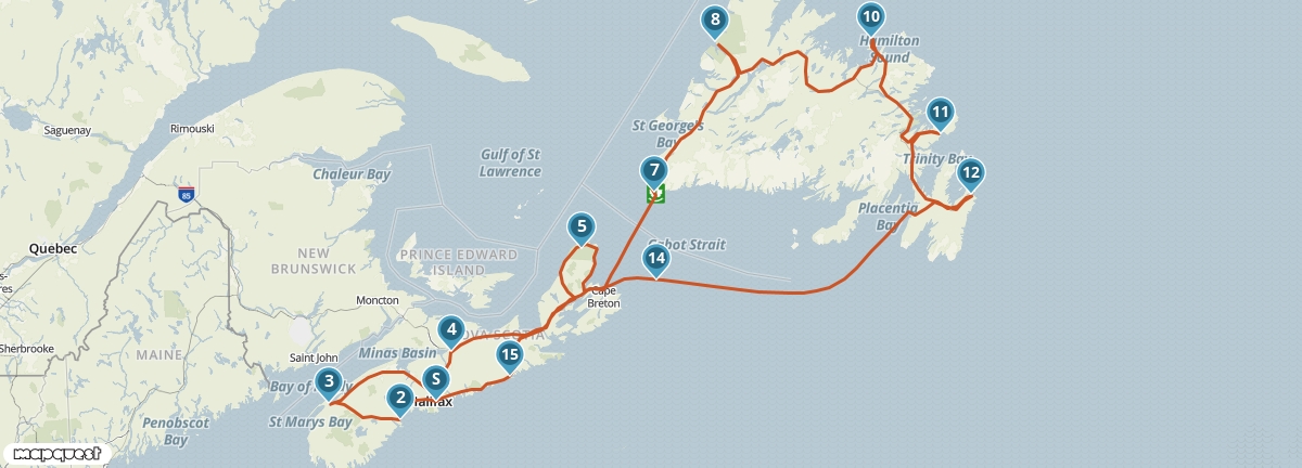Dit traject bevat een ferry van North Sydney naar Channel-Port aux Basques.