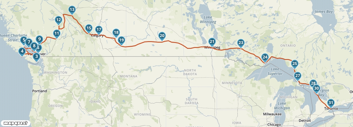 Maak een onvergetelijke reis dwars door Canada van Vancouver naar Toronto. Je reist via bergen, meren en prairies, naar de overweldigende natuur van West-Canada. Je combineert nationale parken als Banff en Jasper met torenhoge watervallen met onontdekte pareltjes als Manitoulin Island en eindigt in de bruisende stad Toronto. Een unieke route waar je het echte Canada leert kennen van de Indigenous People, maar ook Oost-Canada ervaart.