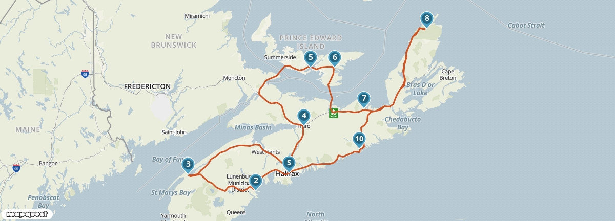 Dit traject bevat een ferry van Wood Islands naar Caribou.