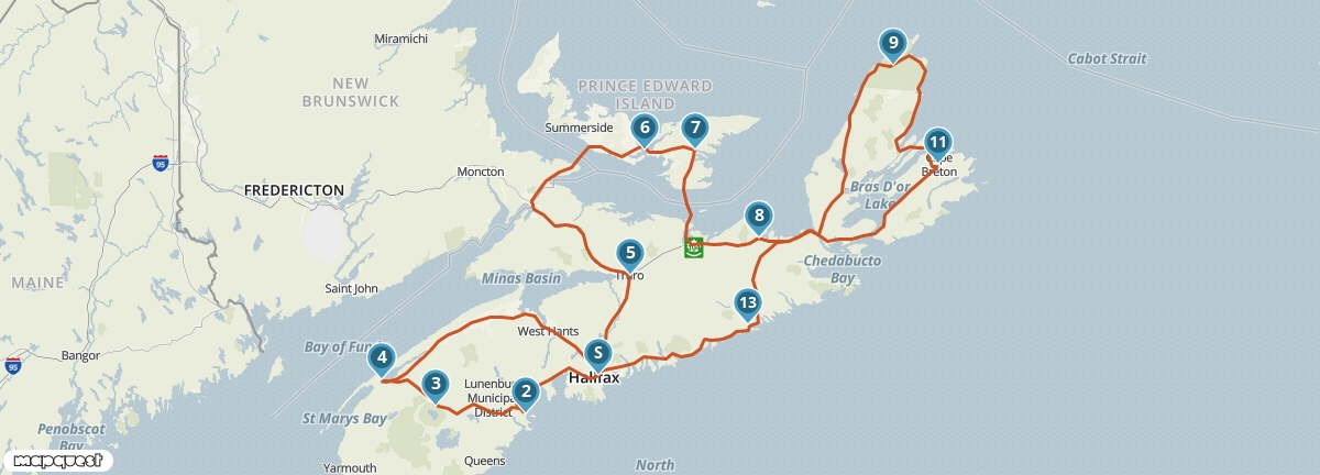 Dit traject bevat een ferry van Wood Islands naar Caribou.